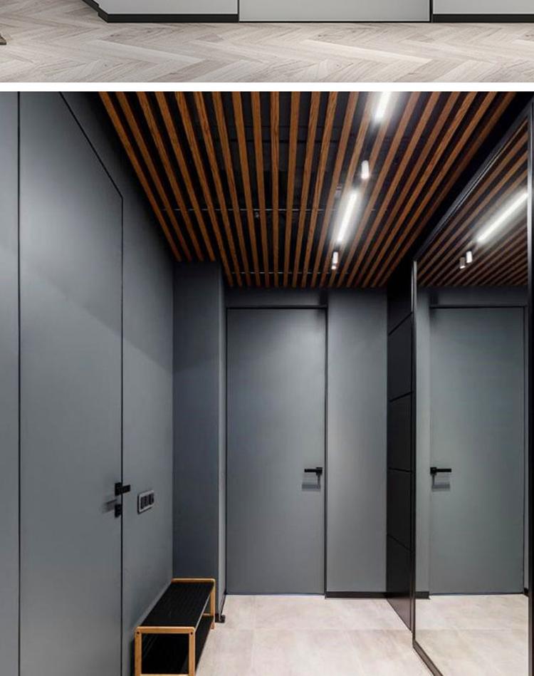 顧名思義,隱形門就是門完全與墻壁融為一體,而且讓你連把手、開關都找不到,順便還和客廳的裝飾畫呼應一下,怎一個完美了得。雙色拼接墻壁更容易隱藏,兩種色彩的沖擊足以讓人忽略隱形門那小小的縫隙,再加上燈光的加持,瞬間美輪美奐。除此之外,還可以試試將壁畫與門結合起來,更加自然的將隱形門融入進去,藝術感爆棚。