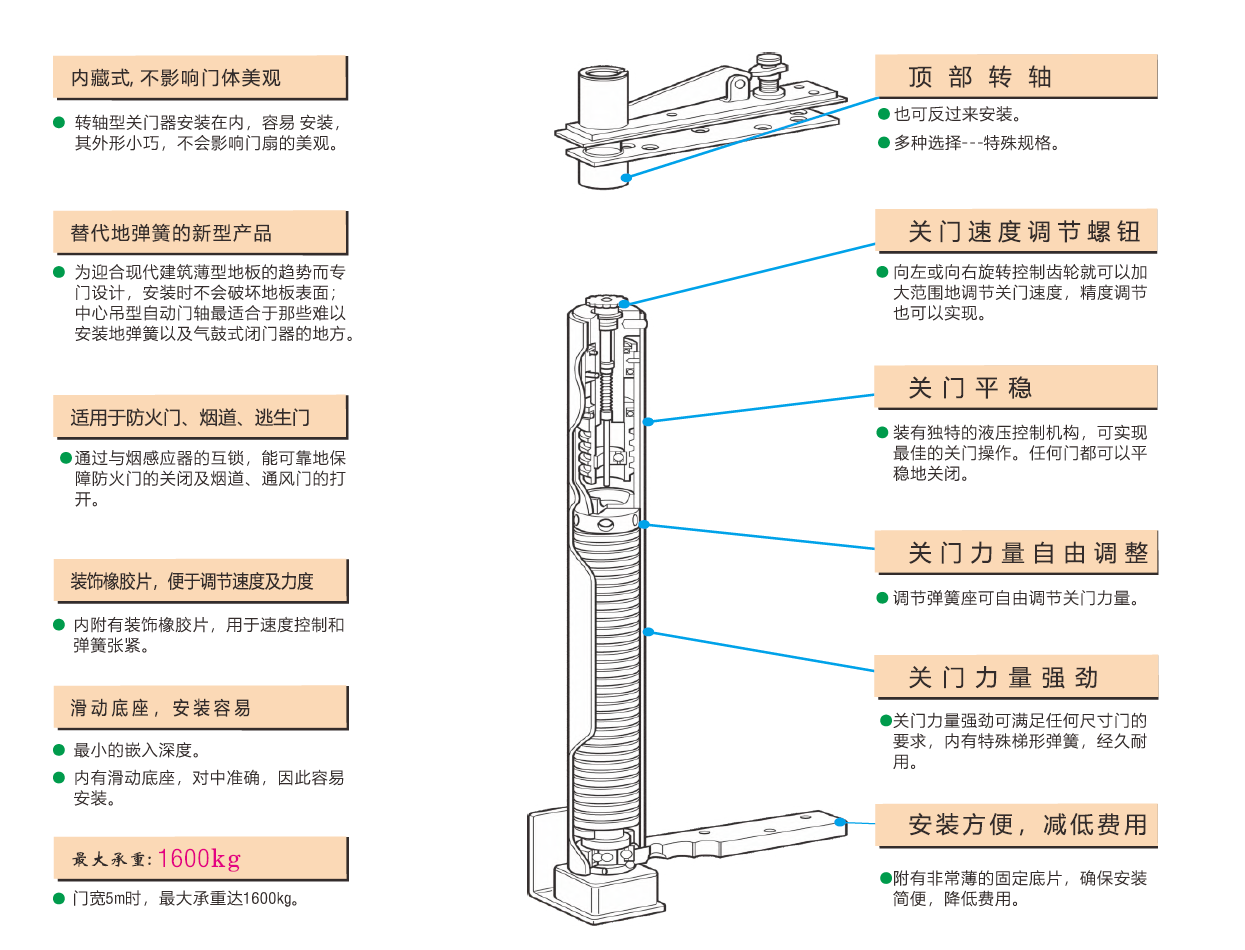 這是我公司可單獨售賣的五金器件,中心吊型自動鉸鏈可用于多種環境,打造的中心旋轉門非常輕便,無論是通電還